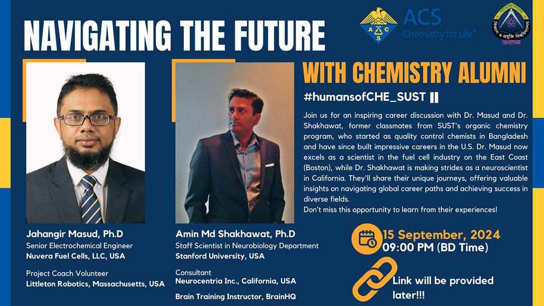 Two ESIA leaders will share their career journeys with chemistry students, highlighting how they navigated their career choices to successfully reach the USA from humble beginnings in Bangladesh.